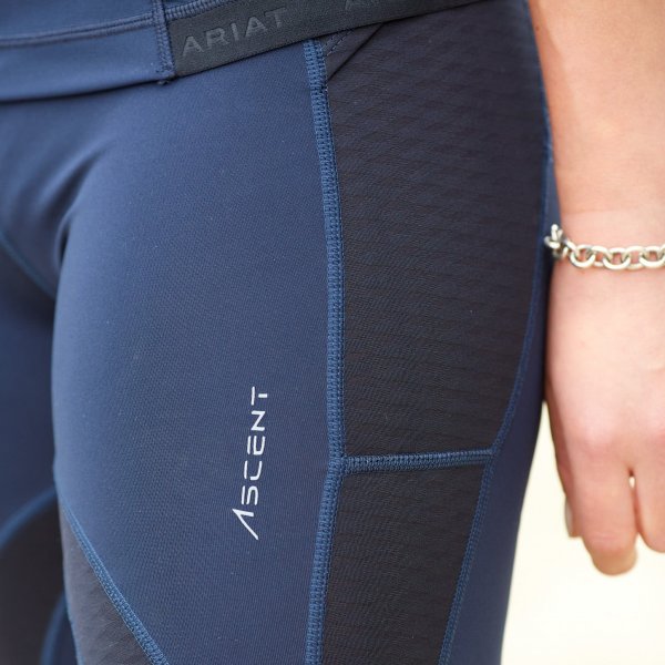 De nieuwste producten die we mochten testen, zijn deze Ariat Ascent baselayer en tights, een donkerblauwe rijlegging met een bijpassend shirtje.